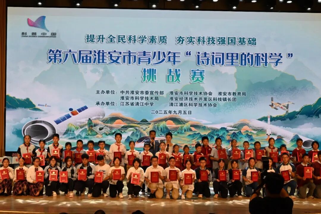 經(jīng)過(guò)近2小時(shí)的激烈角逐和公正的評(píng)審,比賽結(jié)果最終揭曉。江蘇省清江中學(xué)代表隊(duì)在“詩(shī)詞里的科學(xué)”挑戰(zhàn)賽中脫穎而出,榮獲中學(xué)組特等獎(jiǎng)!省清江中學(xué)黨委書(shū)記等領(lǐng)導(dǎo)嘉賓為各代表隊(duì)頒獎(jiǎng)。