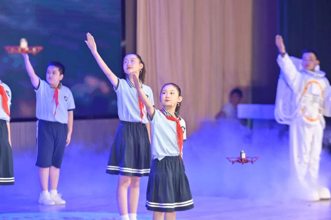 淮安市白鷺湖小學(xué)帶來(lái)的開(kāi)場(chǎng)情景表演《我的科技?jí)簟罚酝嬉暯窃忈尶茖W(xué)向往,瞬間點(diǎn)燃現(xiàn)場(chǎng)氛圍。