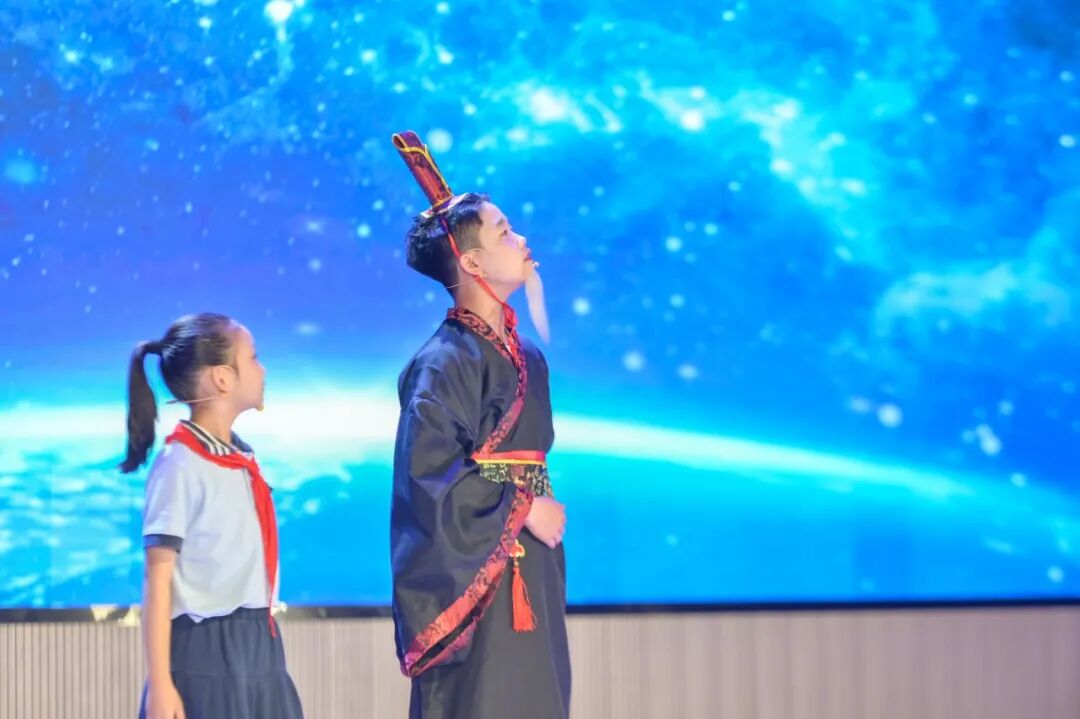 情景劇《向天際》驚艷登場(chǎng)?;搓帋煼秾W(xué)院附屬小學(xué)的學(xué)子們以藝術(shù)化的表達(dá),讓屈原“上下求索”的千年追問(wèn)與現(xiàn)代航天科技展開(kāi)跨越時(shí)空的對(duì)話,古典詩(shī)意與前沿科技的碰撞,讓在場(chǎng)觀眾深深沉醉,也為挑戰(zhàn)賽的開(kāi)啟鋪墊了獨(dú)特的文化基調(diào)。