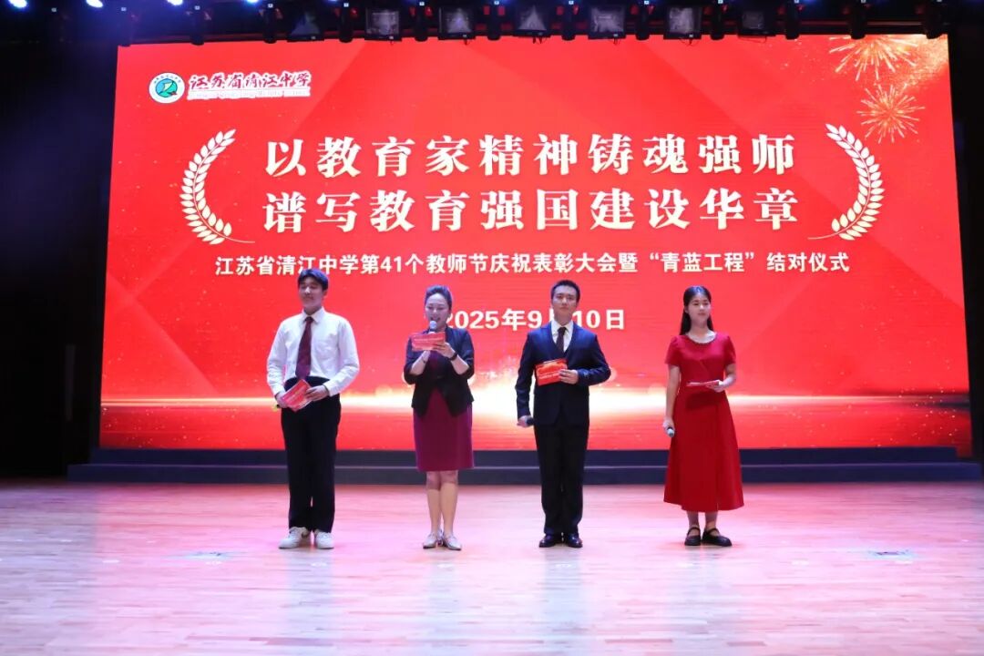 為慶祝第41個教師節(jié),激發(fā)廣大教師愛崗敬業(yè)和無私奉獻的光榮感和責任感,9月10日下午,江蘇省清江中學在校千人報告廳隆重舉行主題為“以教育家精神鑄魂強師,譜寫教育強國建設(shè)華章”的慶祝第41個教師節(jié)表彰大會暨“青藍工程”結(jié)對儀式。省清中領(lǐng)導(dǎo)班子全體成員,全體教師和學生代表出席慶祝大會。大會由楊曉旭、朱晁銳、劉桐彤、劉宣澤主持。