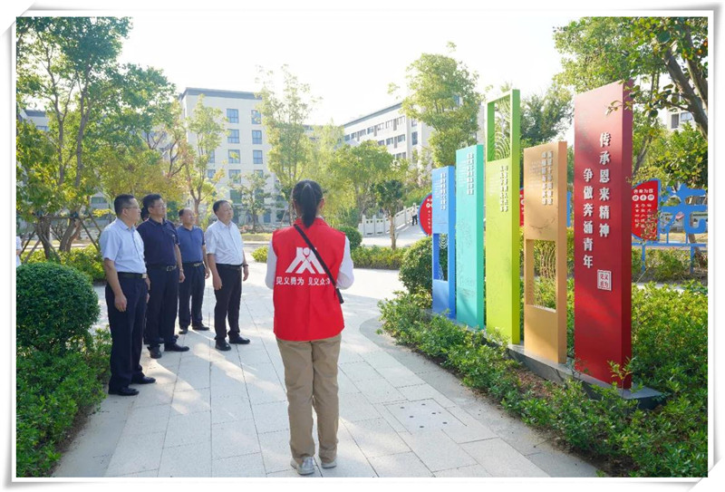 儀式最后,在江蘇省清江中學(xué)見義勇為志愿服務(wù)隊(duì)志愿者鄭好同學(xué)的引導(dǎo)下,大家共同參觀了見義勇為主題園。