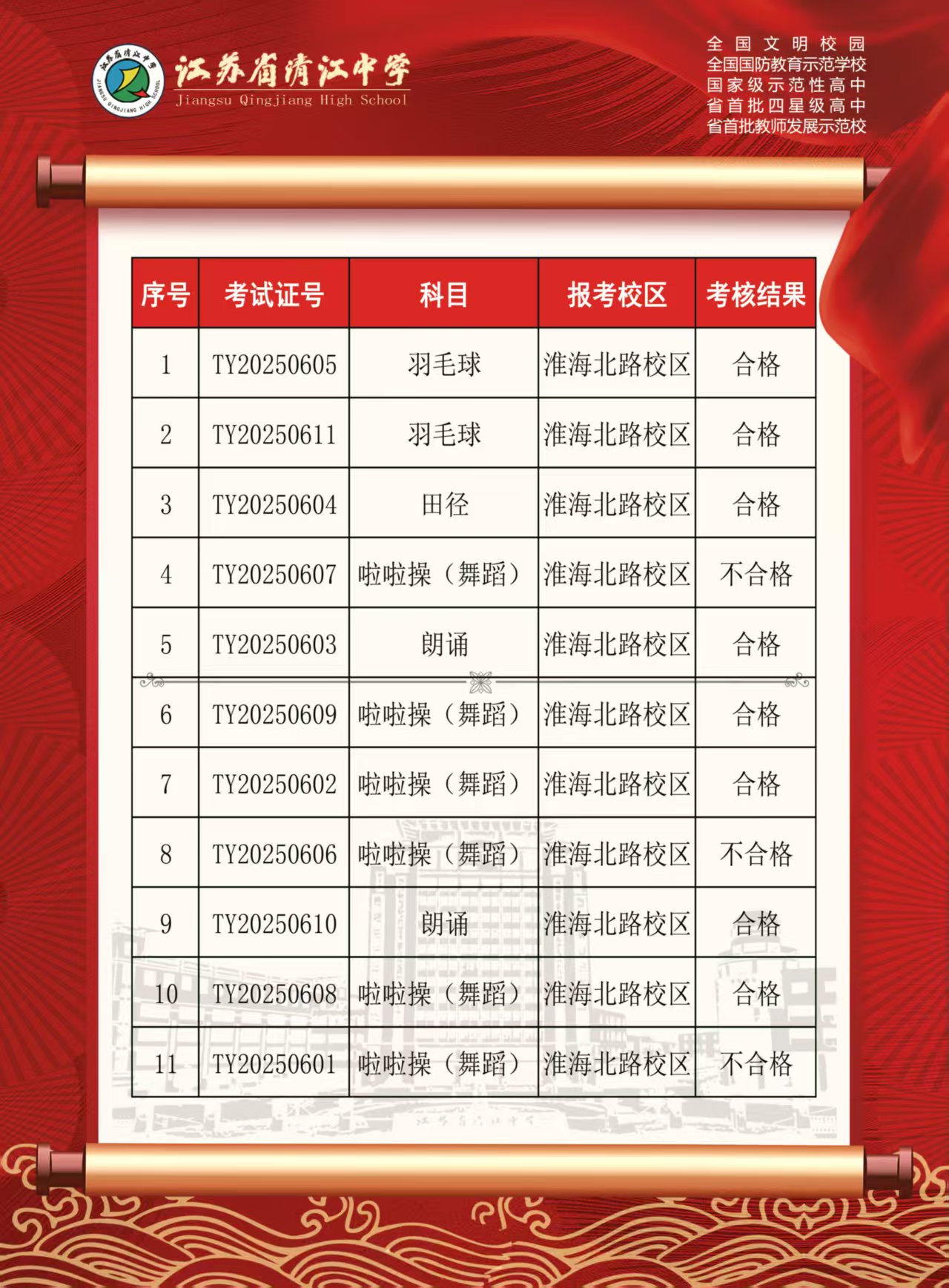 江蘇省清江中學(xué)2025級(jí)高一特長(zhǎng)生選拔結(jié)果公示