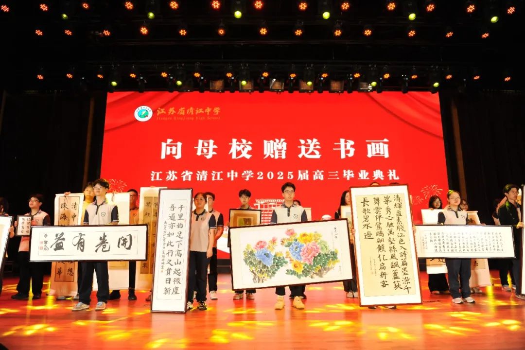 各班畢業(yè)生代表向母校贈送書畫作品,表達對母校最誠摯的祝福。