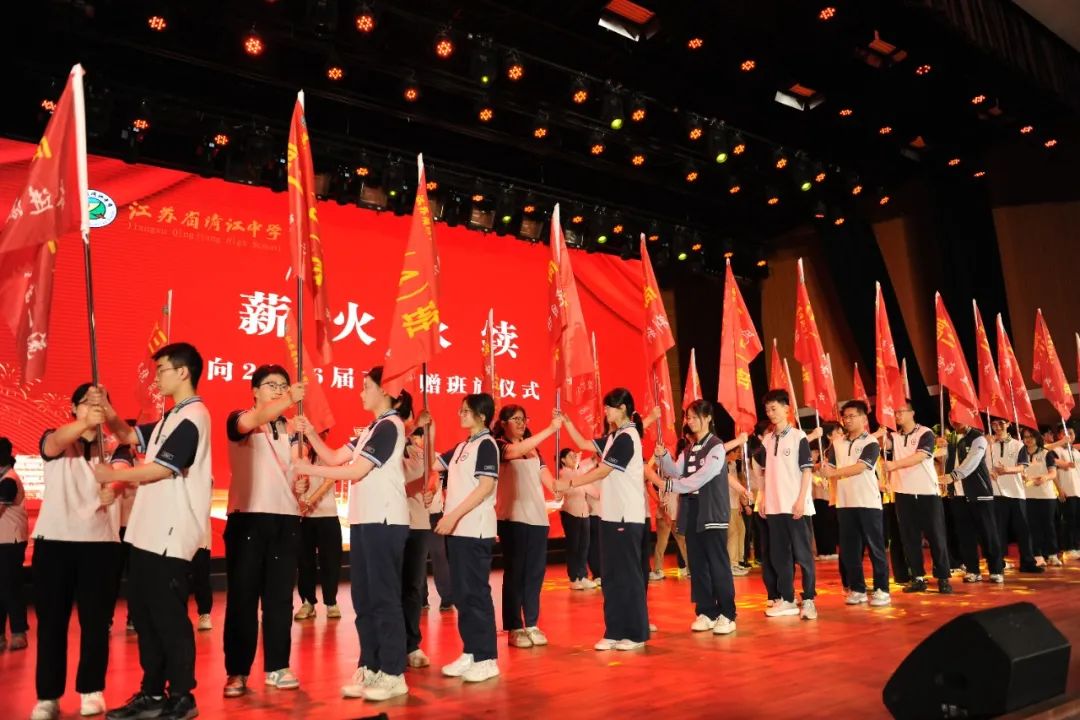 現(xiàn)場舉行新老高三旗幟交接儀式。交接的高三的旗幟,傳承的是為夢想而戰(zhàn)、為信念而搏的奮斗精神。
