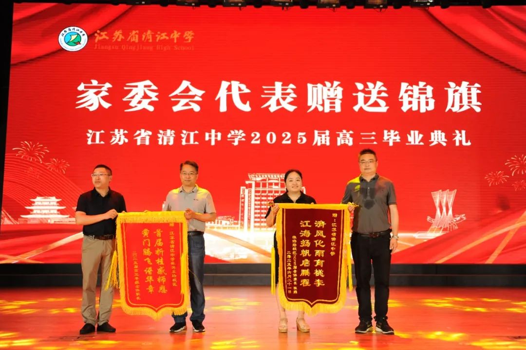 淮海北路校區(qū)家長代表和珠海東路校區(qū)家長代表分別將繡有“清風化雨育桃李,江海揚帆啟鵬程”和“首屆折桂感師恩,黌門騰飛譜華章”內(nèi)容的錦旗贈予學校,表達對學校悉心育人的誠摯感謝。