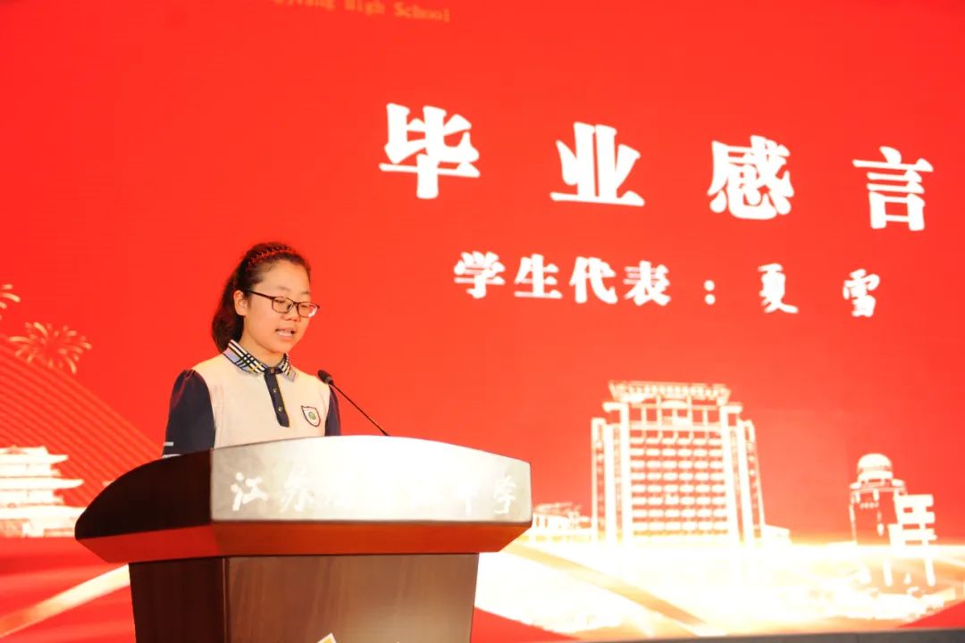 三載勵志求學,一朝鯤鵬展翅,珠海東路校區(qū)高三(21)班蔡沁含同學和淮海北路校區(qū)高三(13)班夏雪同學作為畢業(yè)生代表發(fā)言。她們回顧了自己在母校三年的收獲,表達了對母校培養(yǎng)的感恩,對同學情誼的不舍,對成長的喜悅和對未來的信念。