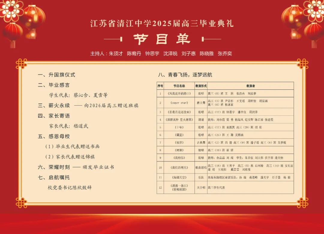【概要描述】青春飛揚,逐夢遠航。6月21日上午,省清江中學2025屆高三畢業(yè)典禮在校千人報告廳隆重舉行。校領導、全體高三師生和家長代表共同見證了這一重要時刻。