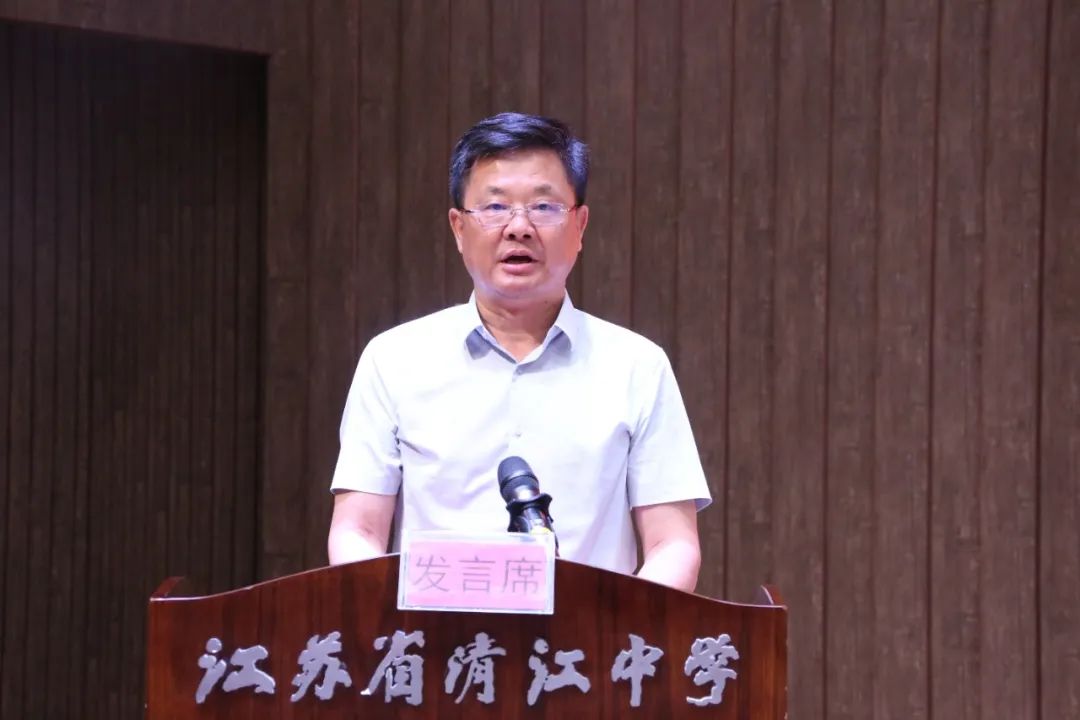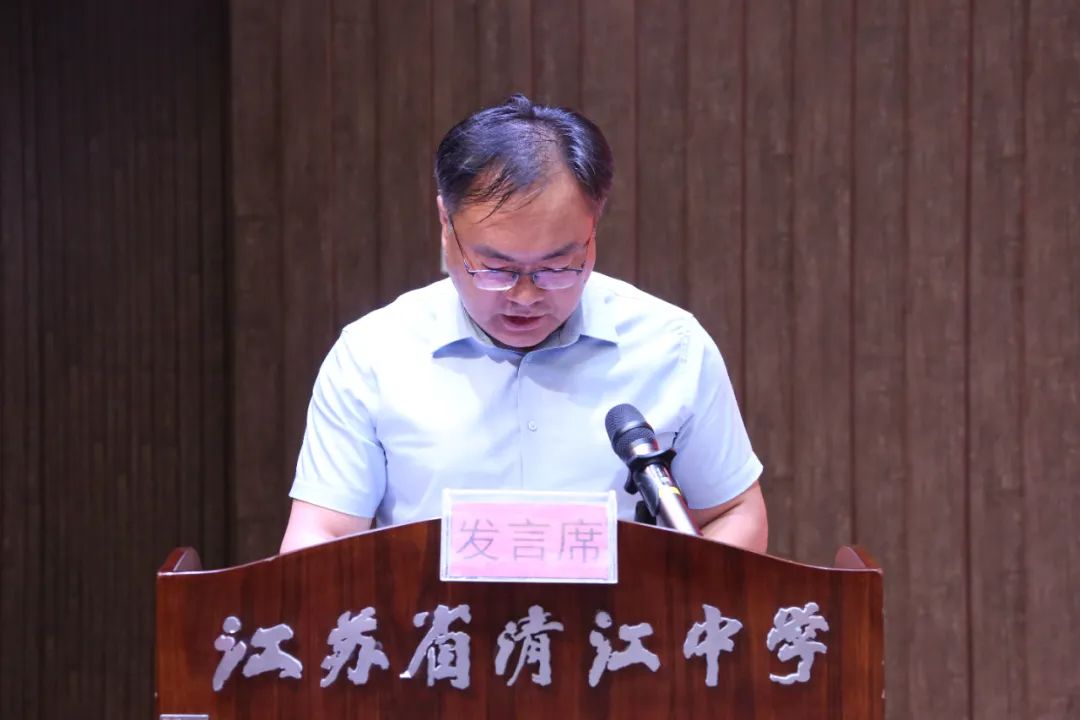 市教育副局長(zhǎng)朱士東作重要講話。朱局長(zhǎng)特別肯定了活動(dòng)的儀式感,從六個(gè)方面對(duì)2026屆新高三團(tuán)隊(duì)進(jìn)行勉勵(lì),一是向時(shí)代致敬,要求全體高三教師立足國(guó)家教育強(qiáng)國(guó)時(shí)代背景,緊扣“縣中振興”主題,用優(yōu)異的高考成績(jī),擦亮“學(xué)在淮安”教育品牌。二是向榮譽(yù)致敬,發(fā)揚(yáng)“特別能吃苦,特別能戰(zhàn)斗,特別能攻關(guān),特別能奉獻(xiàn)”的高三精神,為學(xué)校爭(zhēng)取更多輝煌成就。三是向目標(biāo)致敬,要敢于直面“前有標(biāo)兵,后有追兵”的發(fā)展境遇,咬定目標(biāo)不放松,勇敢接受挑戰(zhàn)。四是向團(tuán)隊(duì)致敬,全體高三教師要相互團(tuán)結(jié),相互包容、相互理解、相互支持,主動(dòng)分享教學(xué)思想、教學(xué)方法、教學(xué)心得,做到揚(yáng)長(zhǎng)避短、取長(zhǎng)補(bǔ)短。五是向研究致敬,要深刻領(lǐng)悟“無(wú)價(jià)值不入題,無(wú)思維不命題,無(wú)情境不成題,無(wú)任務(wù)不立題”的精髓要義,研究新課標(biāo)、新課程、新教材、新高考,實(shí)現(xiàn)為黨育人、為國(guó)育才的教育目的。朱局長(zhǎng)的講話激情飽滿,擲地有聲,贏得了大家陣陣掌聲。