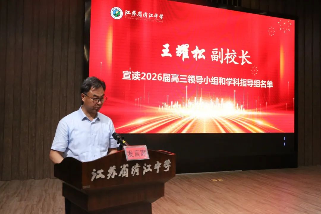副校長(zhǎng)王耀松宣讀2026屆高三工作領(lǐng)導(dǎo)小組、學(xué)科指導(dǎo)組成員名單及工作職責(zé)。