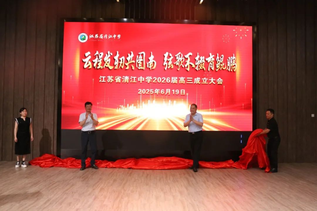 市教育局副局長(zhǎng)朱士東、校黨委書記陳欣、教師代表李勤、夏志紅為2026屆高三成立揭幕。
