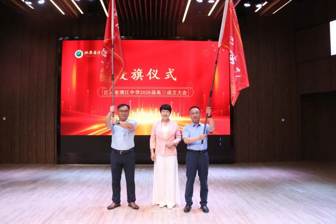 校長(zhǎng)喬中云為2026屆新高三年級(jí)授旗,年級(jí)主任黃保球、丁中明接旗。