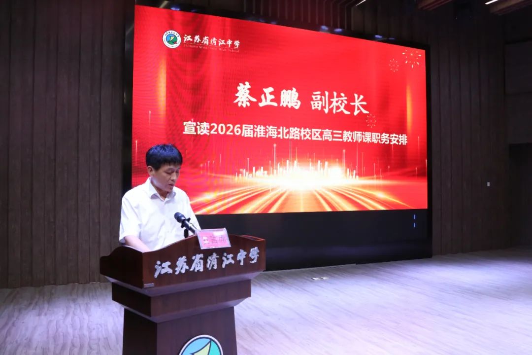 淮海北路校區(qū)高三分管領(lǐng)導(dǎo)、副校長(zhǎng)蔡正鵬宣讀2026屆高三團(tuán)隊(duì)教師名單。