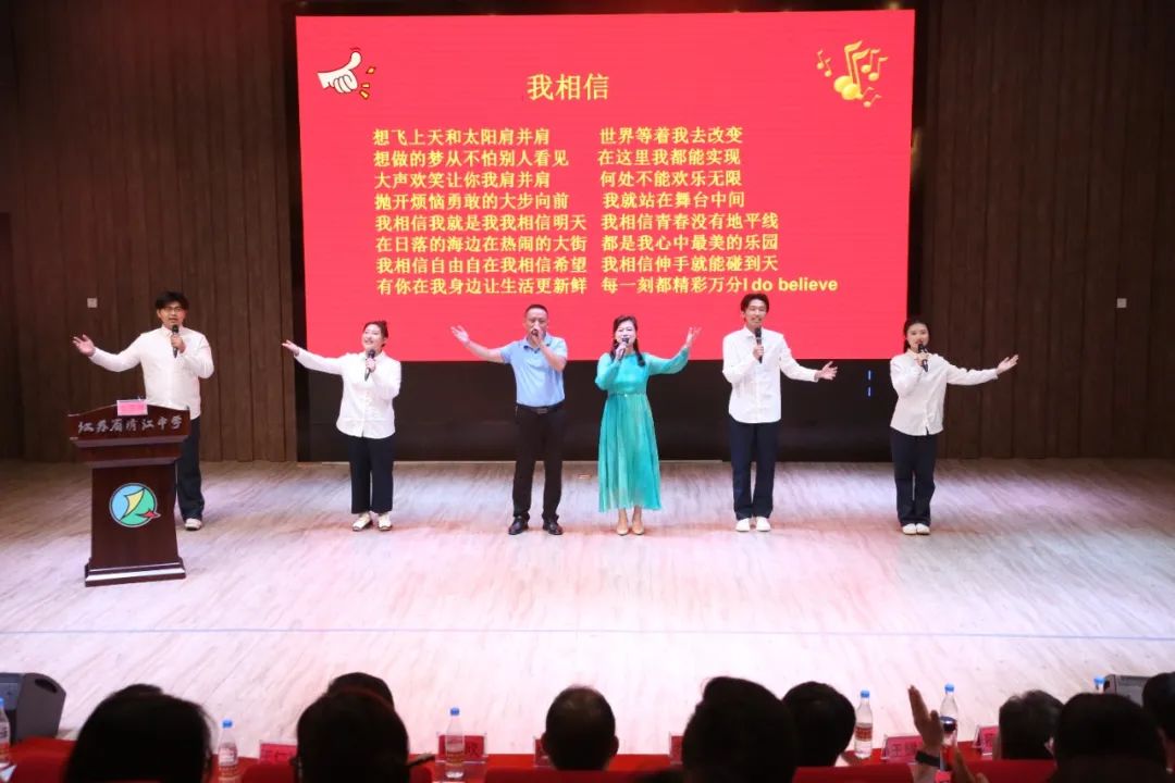 教師代表余晶晶、劉闖,學(xué)生代表劉大偉、朱旨儀、伏宇羿、逢天怡共同演唱歌曲《我相信》。