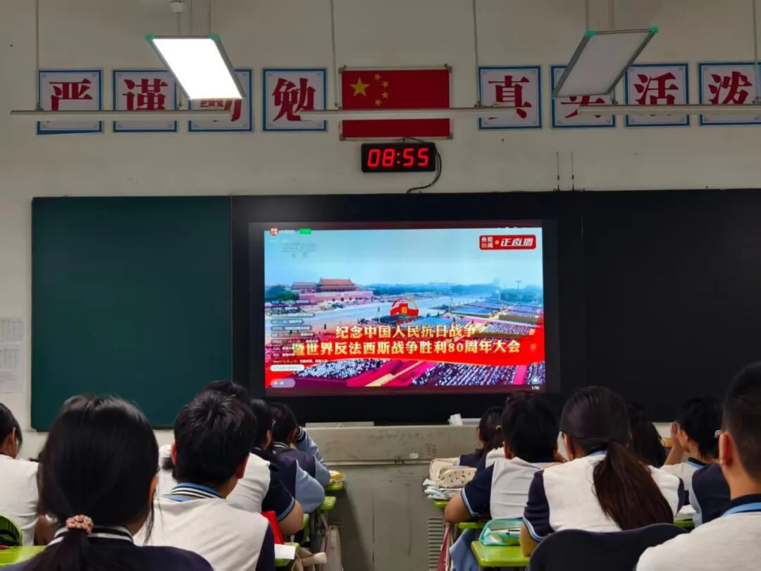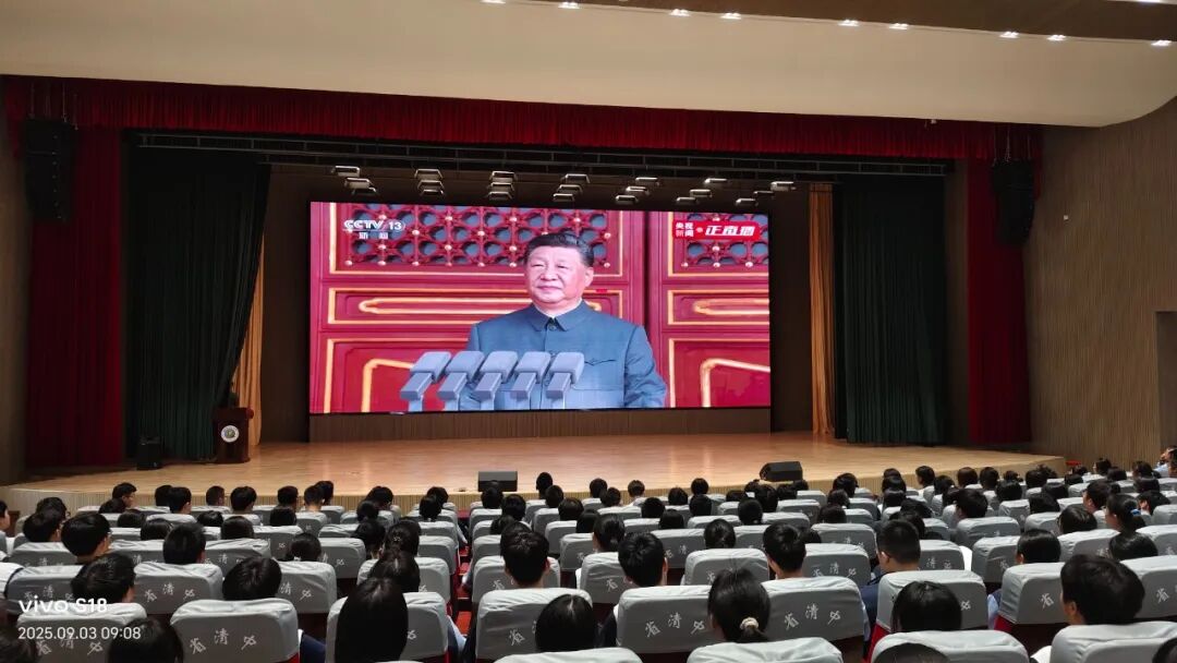 為紀(jì)念中國(guó)人民抗日戰(zhàn)爭(zhēng)暨世界反法西斯戰(zhàn)爭(zhēng)勝利80周年,9月3日上午9時(shí),江蘇省清江中學(xué)組織兩個(gè)校區(qū)全體師生集中收看“九三”閱兵儀式現(xiàn)場(chǎng)直播,在莊嚴(yán)盛典中感受民族復(fù)興的磅礴力量,感受國(guó)家的強(qiáng)大與軍隊(duì)現(xiàn)代化建設(shè)的成就,激發(fā)愛(ài)國(guó)熱情,凝聚奮進(jìn)力量。