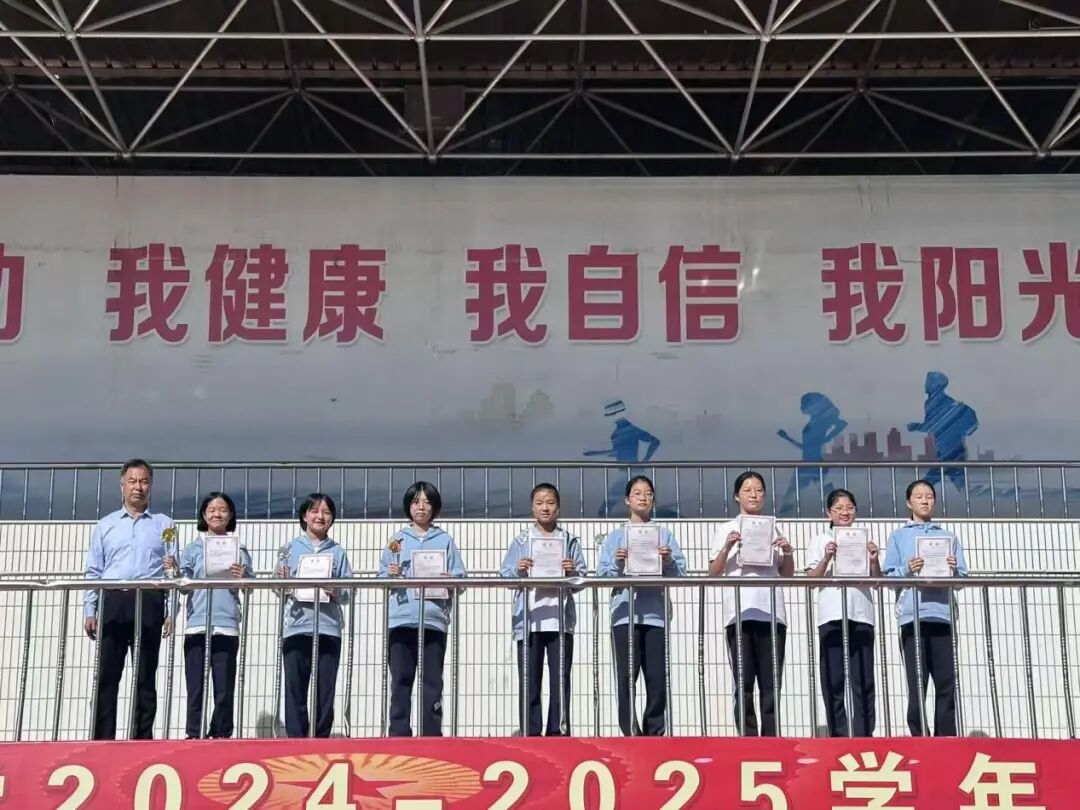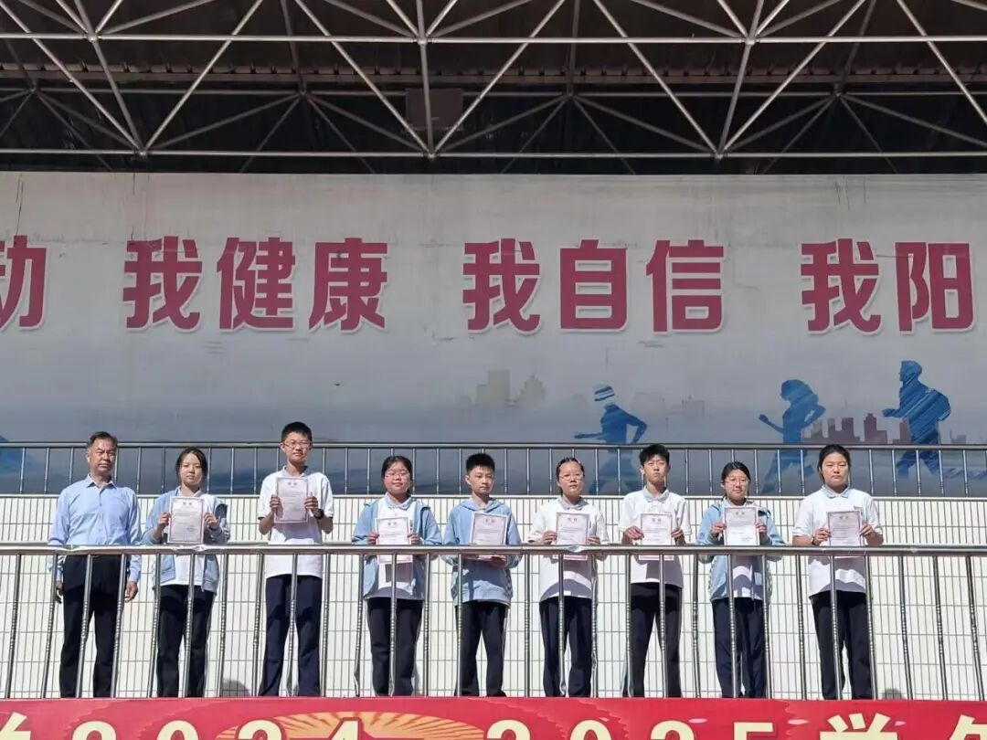 隆重的頒獎儀式在操場舉行,副校長王耀松為獲獎選手和班級頒發(fā)了榮譽證書和精美獎品。