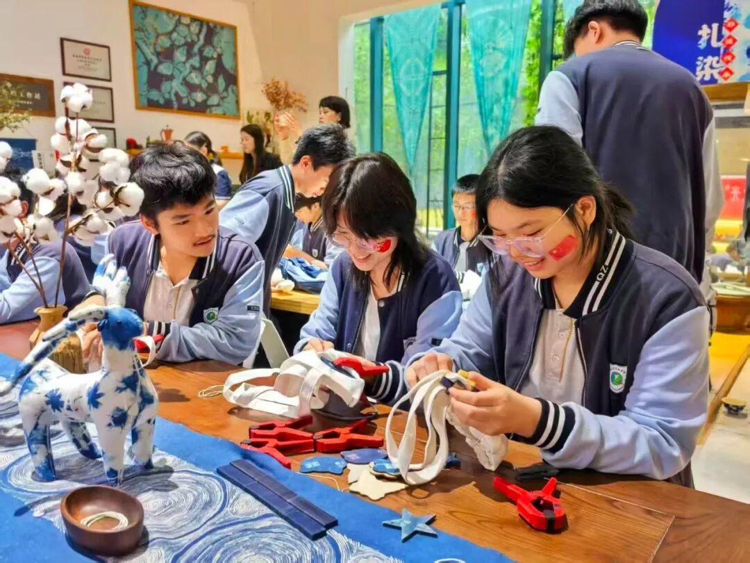 國慶期間,為弘揚中華優(yōu)秀傳統(tǒng)文化并深入探究非遺扎染技藝與學科間的緊密聯(lián)系,省清中國防班高二(1)班的全體同學積極開展了主題為“非遺之光——照亮我們心中永恒的記憶”的社會實踐活動。
