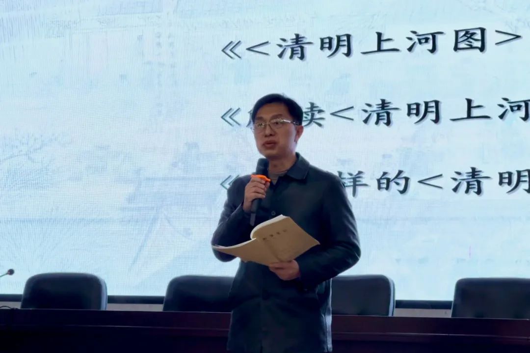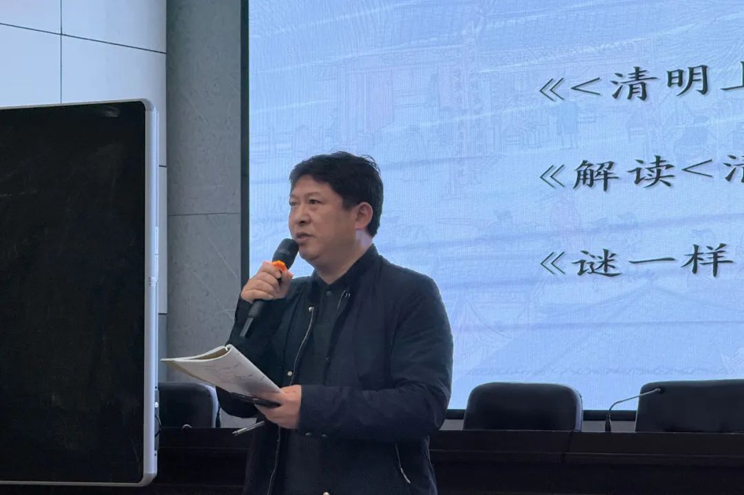 初中語文組李干老師開設(shè)了展示課《品“盛”立骨,鑒汴京風華》。李老師以"盛"字立骨解讀北宋末年的繁華表征,借助"夢回"意象解讀來實現(xiàn)"現(xiàn)實凋敝—畫中繁華—精神返鄉(xiāng)"三層遞進,揭示藝術(shù)創(chuàng)作的歷史療愈功能。李老師通過文本解讀和藝術(shù)鑒賞雙重視角有意識地構(gòu)建藝術(shù)鑒賞類文本的賞析范式,最終實現(xiàn)張擇端繪畫語言與毛寧文學(xué)語言的相互轉(zhuǎn)譯。